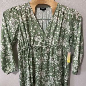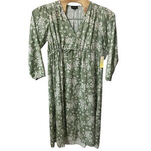 Summersalt The Cinched Waist Long Sleeve Caftan Dress Sz Small Floral Green NWT
