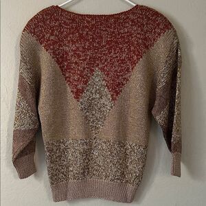 Stay cozy and stylish with this beautiful vintage multi-color sweater with padded shoulders.