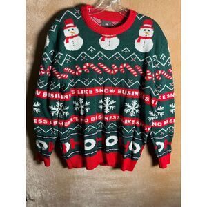 H&M Ugly Christmas Sweater Snowman Candy Cane Ho Ho Ho Green Red L