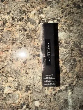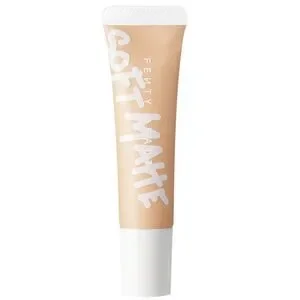 Achieve a flawless look with Fenty Beauty's Soft Matte Foundation. This tan shade provides a smooth, matte finish for a natural glow.