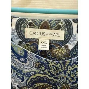 Cactus + Pearl LINED Tunic CAFTAN STYLE Top Blouse ATTACHED TANK Beads XXXL Plus. Ships from smoke free home. Measurements in pics.