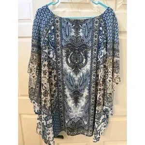 Cactus + Pearl LINED Tunic CAFTAN STYLE Top Blouse ATTACHED TANK Beads XXXL Plus