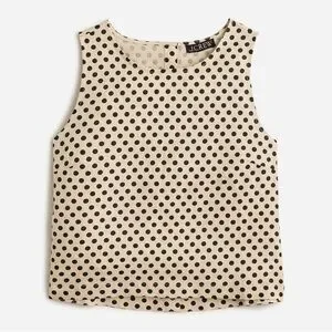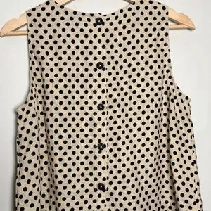 J. Crew Maxine button-back top in dot linen Black and Cream Polka Dot NWOT