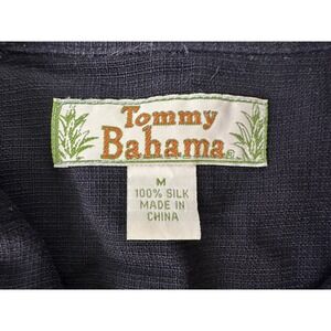 Keywords: Tommy Bahama, silk shirt, button up, mens shirt, palm tree, pineapple, tropical, resort wear, island style, casual shirt, embroidered, medium, menswear