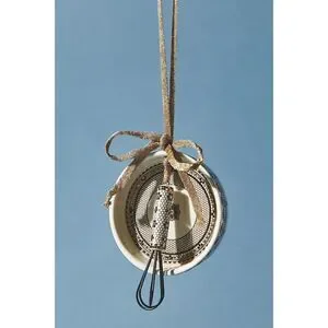 Inspired by our beloved Bistro Tile collection, this charming ornament features bold mosaic-inspired motifs and a hint of glimmer, paying homage to the sidewalk cafés of Paris.Exclusively at AnthropologieGlazed and decaled stoneware, ironFeatures "2022" written on backImportedPie Dish: 3" diameter, 0.75"DWhisk: 3.25"L, 0.75"W