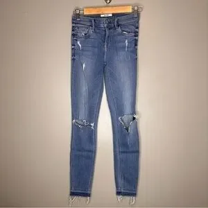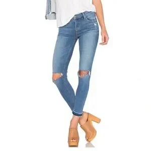 GRLFRND Candice A Love Song Distressed Raw Hem Mid-Rise Stretch Ankle Jean