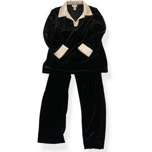 VTG Neiman Marcus Black White Lounge Suit Black Velvet White Satin Collar & Cuff