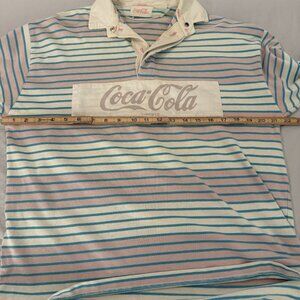 Vintage Coca-Cola 80s Shirt Polo Rugby Rare Pink Teal Stripes Coke Medium