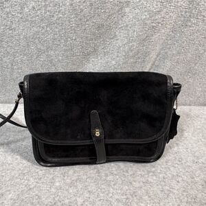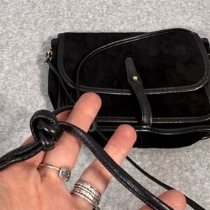 Vintage Etra Women's Black Suede Leather Crossbody Bag Small Casual