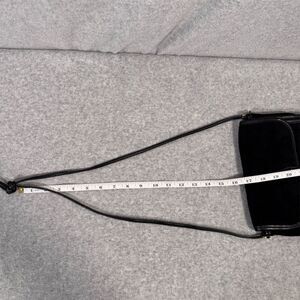 Keywords: crossbody bag, suede, leather, black, medium, adjustable strap, gold hardware, casual, French design, pre-owned.