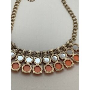 Color Block Statement Necklace Coral Pink Nude Faceted Beads Gold Chain