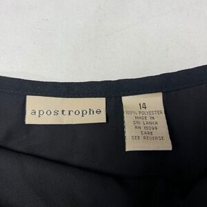 Keywords: black midi skirt, ruffle trim skirt, lined skirt, career skirt, party skirt, cocktail skirt, evening skirt, womens skirt, size 14, black skirt, apostrophe, retro skirt, vintage style, formal skirt, classic skirt