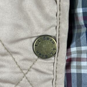 LL BEAN Quilted Barn Vest Women's Size M Beige Full Zip Insulated Plaid Lined