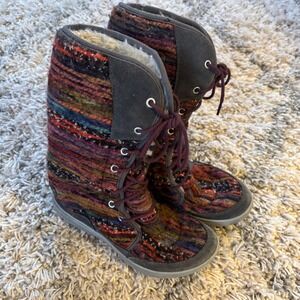 Merrell Womens Grey Multi Knit Suede Faux Fur Mid Calf Winter Boots Size 6