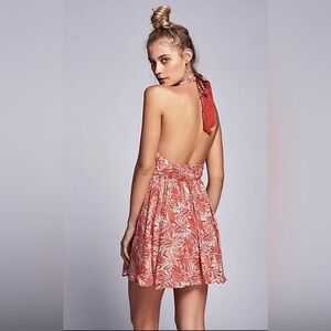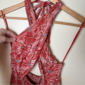 Free People Women’s Libby Convertible Mini Halter Dress Red Floral XS Beach Boho