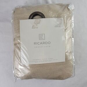 Ricardo Grasscloth Lined Grommet Patio Panel Beige Linen 110x84 Extra Wide NEW