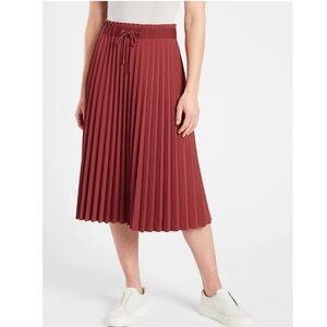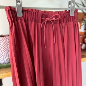 Athleta Hayes burgundy red pleated midi skirt with elastic drawstring waist. Like new condition. Measurements in pics. Size XS.