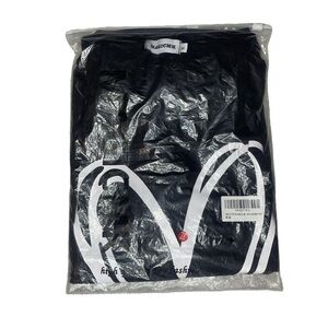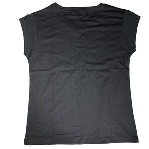 Magicmk V-Neck Black Cotton Blend White Heart Graphic Cap Sleeve Tee Women XL