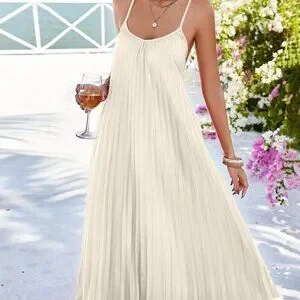 Apricot Casual Women's Loose Pleated Strap Dress