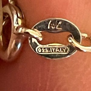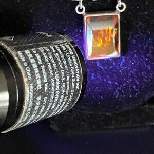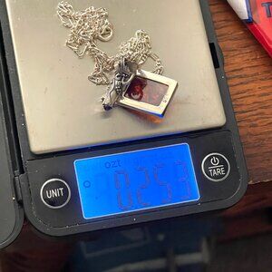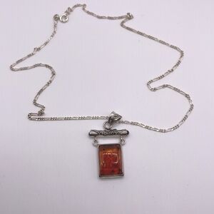 Signed LB Lori Bonn Sterling Silver and Baltic Amber pendant necklace. Beautiful etched design bail holds rectangular sterling silver and Baltic amber pendant. Bail and pendant are 1 1/2" long and 7/8" at widest point. The amber piece measures 1/2" in width and is about 5/8" wide. Pendant is marked 925 and LB -- Lori Bonn I believe, and the chain is marked AZ 925 Italy. The chain drops 8 3/4". The stone does glow green under a black light. Pre-owned in excellent condition. Please ask if you have questions.
