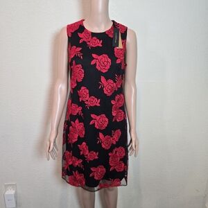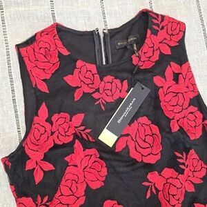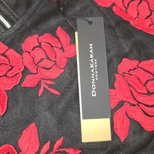 Donna Karan Black & Embroidered Red Roses Dress Size 4 NWT