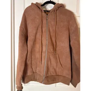 Women's Trendy Queen Brown Full Zip Hoodie Sweatshirt Size L