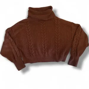 Wild Fable Brown Cable Knit Cowl Neck Cropped Sweater Size S