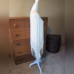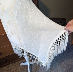 Knox Rose Boho White BEACH Cover-up FRINGE Poncho