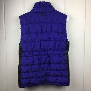 Andrew Marc Puffer Vest Faux Leather Blue & Black, Size Large