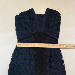 Adelyn Rae Navy Blue Black Lace V Neck Strapless Bodycon Mini Dress XS
