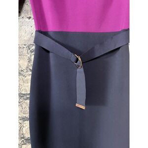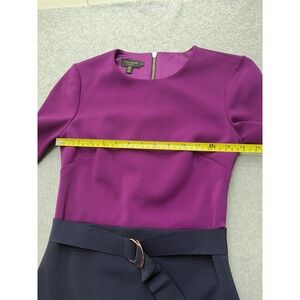 Ted Baker Dress Womens Small Purple Navy Colorblock Belted Sheath Midi Work
