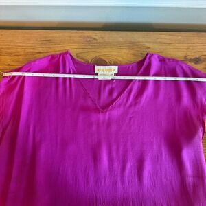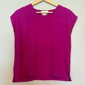 The Birds Womens Magenta Pink 100% Silk V-Neck Cap Sleeve Blouse Top Size Medium