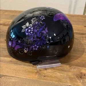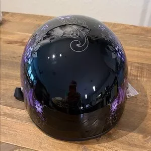 1/2 shell biker helmet hugs head for a secure, snug fit that provides superior comfort