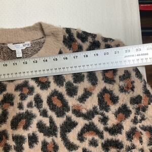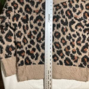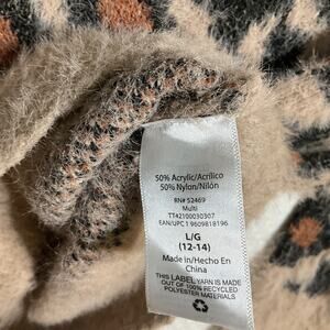 Time And Tru Women Sweatshirt L (12-14) Beige Acrylic Leopard Print Long Sleeve