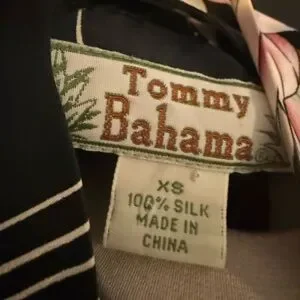 Tommy Bahama Black and Pink Silk Kimono Robe