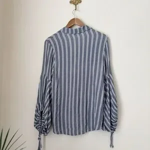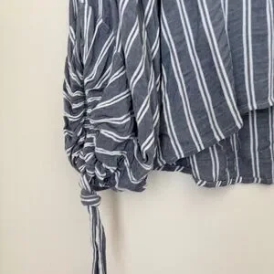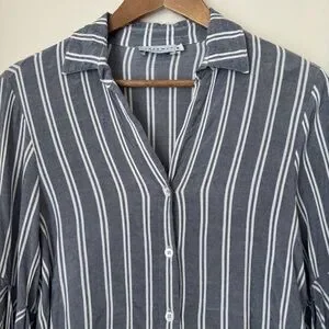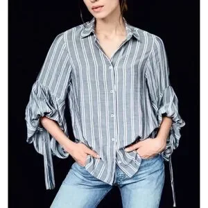 HARSHMAN Violetta Tie Sleeve Button Front Shirt Medium Gray