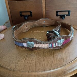 Vintage Brown Leather Belt with Embroidery And Silver Buckle