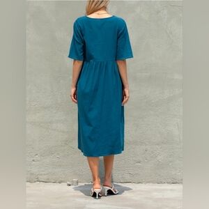 This elegant teal midi dress is perfect for any occasion. Its classic design offers a comfortable fit and stylish look.