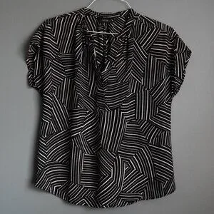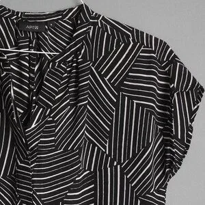 2/$13 Apt. 9 Flowy Business Top, Black & White Striped - Size Medium