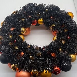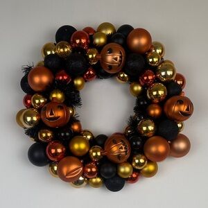Halloween Shatterproof Ornament Orange Black Gold Shiny Wreath Festive Spooky