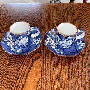 ASHIBI Porcelain Tea Cup Set, Blue and White Cherry Blossoms, Made In Japan