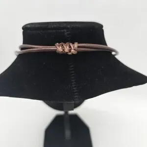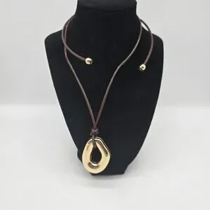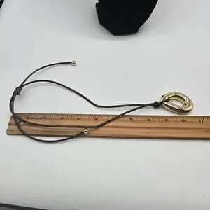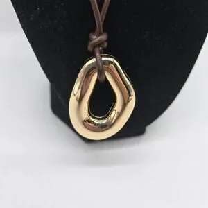 Atterri Brown Leather Cord Necklace and Gold Tone Pendant Adjustable Minimalist