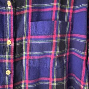 Old Navy The Boyfriend Shirt XL blue & pink plaid soft flannel cotton one pocket button up long sleeve.