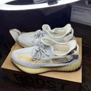 Adidas Yeezy Boost 350 V2 with a sleek gray upper and vibrant yellow sole. Ideal for everyday style.