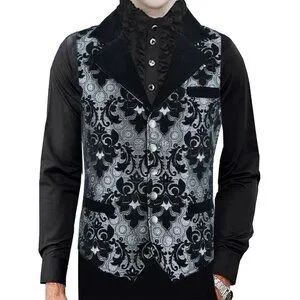 Victorian Gentleman's Aristocrat Vest Black Silver Tapestry Stylish Casual Vest
