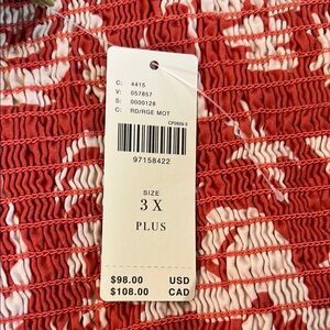 Chic halter dress with a coral and white pattern. Flowy and elegant design. Perfect for summer outings. Brand new with tags measure 24 inches pit to pit. 40 inch length.