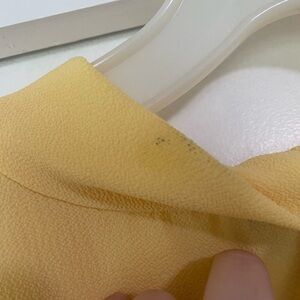 Has a dirt spot on back of the collar. It looks like it would come out when washed, but I didn’t want to cut the tags. I cannot promise it will come out, that is just my opinion
