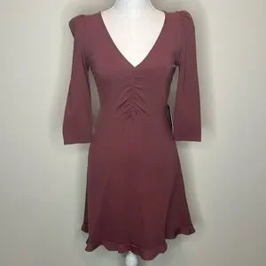 Express Mauve V Neck Ruched Knit Dress. XS