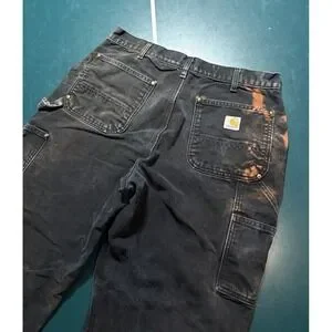 Vintage Carhartt Double Knee Pants Size 32x28 Faded Black BLK B01 Distressed USA