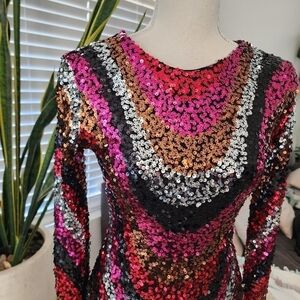 B. Darlin Long Sleeve Open Back Pattern Sequin Pull-On Dress. Size Small. New without tags.